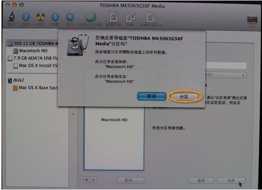 6、提示分區數據將被抹掉,確認沒問題后點擊【分區】。