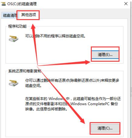 6、在“其他選項”中,還能夠卸載一些不需要的軟件和驅動,以及清理舊的卷影副本。