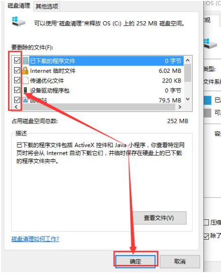 3、將下方的兩項都勾選上,點擊“磁盤清理”。