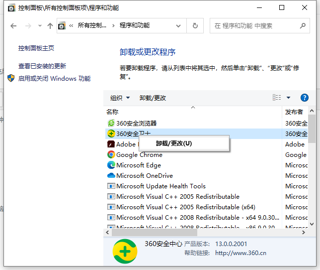 1、打開電腦的控制面板-程序和功能,然后找到多余的安裝的軟件,鼠標右鍵選中后卸載,釋放內存空間。