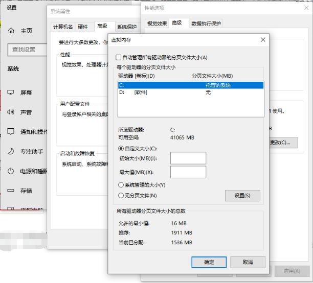 進入電腦的計算機——屬性——高級系統設置——性能設置——高級選項卡——虛擬內存——更改——選擇要設置的驅動器c盤,然后根據需要自定義設置大小即可。設置好之后系統就會根據現在電腦的情況自動對虛擬內存的需求進行調節。