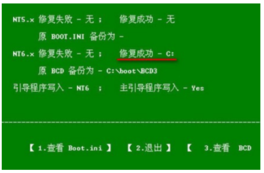 6、等待引導修復完成后,點擊退出并拔掉u盤重啟電腦就可以修復電腦沒有引導的問題了。