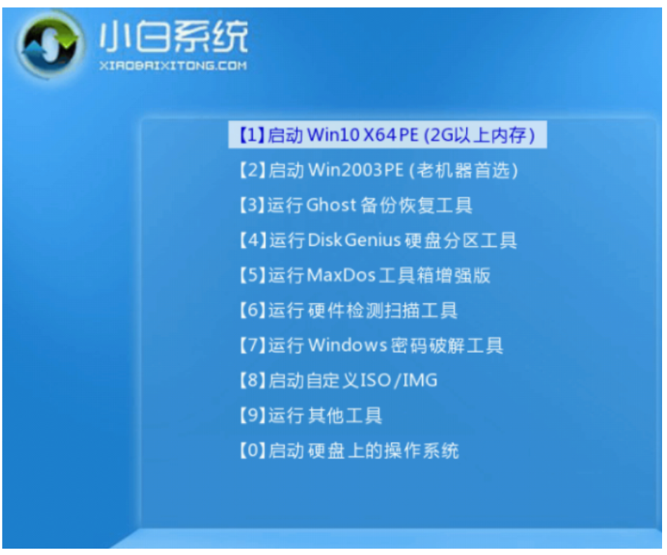 3、接著可以看到進入到小白PE系統界面。我們選擇“啟動win10x64PE(2G以上內存)”回車鍵進入。