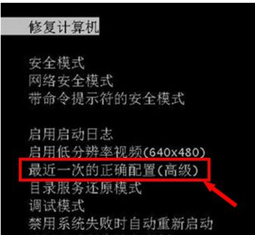5.如果不是usb排線的故障問題,那我們再次選擇關機重啟電腦,出現請選擇要啟動的操作系統時,選擇F8鍵,然后進入高級啟動中,再選擇最后一次正確的配置即可。