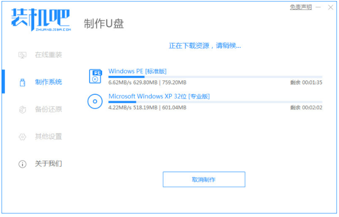 1、首先將U盤插入電腦的USB接口上,打開下載安裝好的裝機吧一鍵重裝系統軟件,在制作系統下選擇U盤,點擊開始制作。