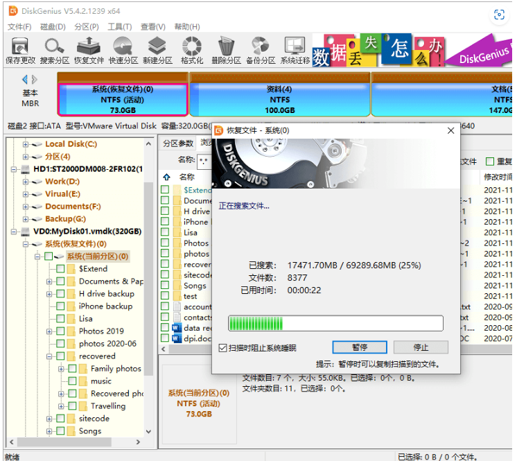 以DiskGenius為例,它是一款功能強大的數據恢復軟件,在虛擬機數據恢復方面有豐富的經驗,算法穩定,恢復效果高。使用DiskGenius在虛擬機內部恢復數據的步驟如下: