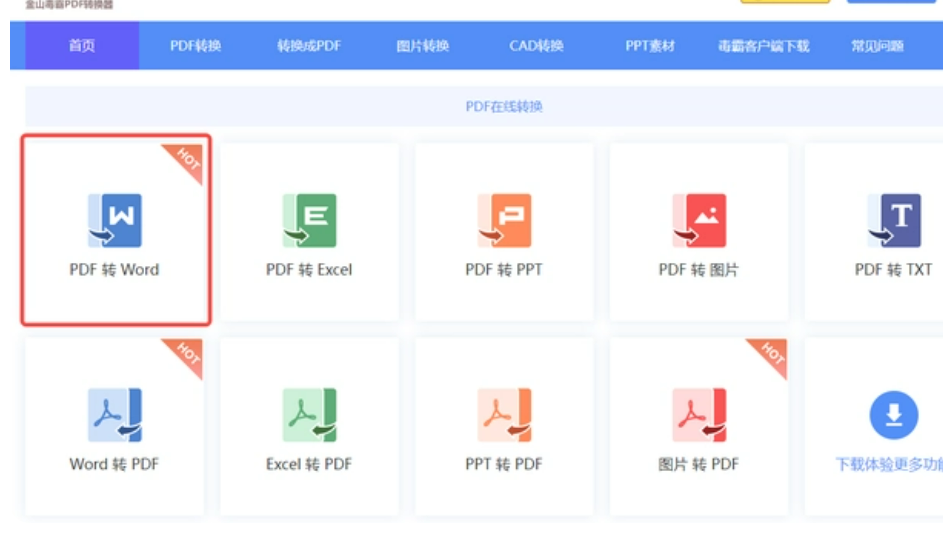 方法二:使用“金山毒霸PDF在線轉換器”