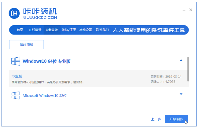 2、選擇本次需要安裝的操作系統,點擊開始制作。