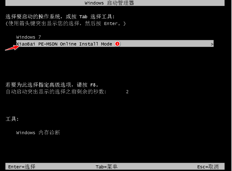3、在開機選項界面,自動進入xiaobai-pe系統。