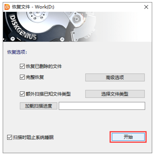 第三步:勾選恢復選項,然后點擊“開始”按鈕,讓軟件開始掃描這個分區。