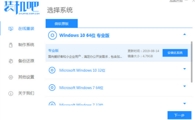 1、我們首先打開電腦瀏覽器搜索裝機吧一鍵重裝系統,將軟件下載好并點擊打開,選擇需要下載的win10系統。