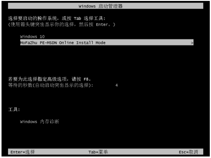 4、重啟電腦,進入windows 啟動管理器,選擇第二個選項按回車鍵進入pe系統。