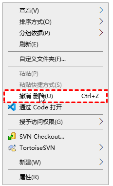 如果你在幾秒鐘前剛剛刪除了文件、文件夾和其他內容,有效的方法是同時按“Ctrl + Z”撤消刪除操作。它在大多數情況下都會生效。如果鍵盤快捷鍵有問題,你也可以右鍵單擊鼠標,然后選擇“撤消刪除”。
