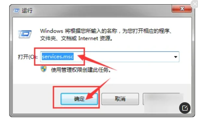 2、接下來在運行界面,我們輸入services.msc,并點擊確定按鈕。