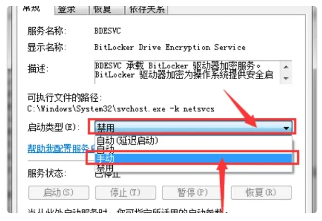 4、在該服務項目設置界面,我們將禁用修改為手動。