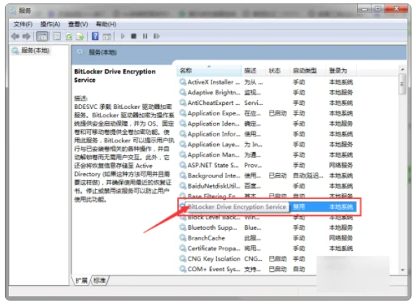 3、在服務設置界面,我們找到BitLocker Drive Encryption Service項目,并雙擊將其打開。