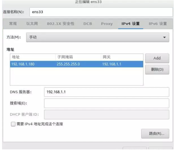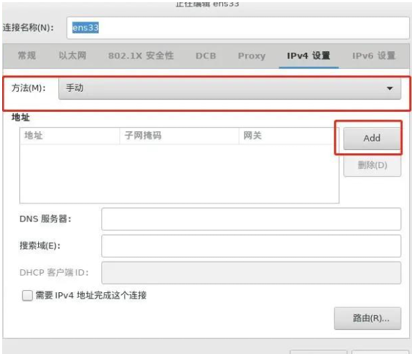 10、選擇IPv4設置,點選手動連接,點擊ADD添加一個IP。