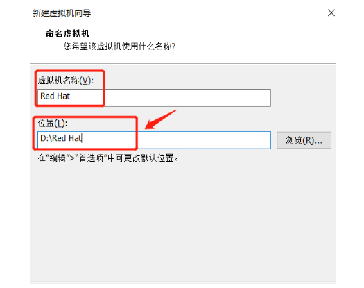 5.給虛擬機命名,建議安裝在除系統盤C盤以外的磁盤。