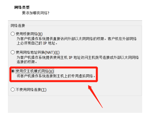 8.然后選擇“使用僅主機模式網絡”。
