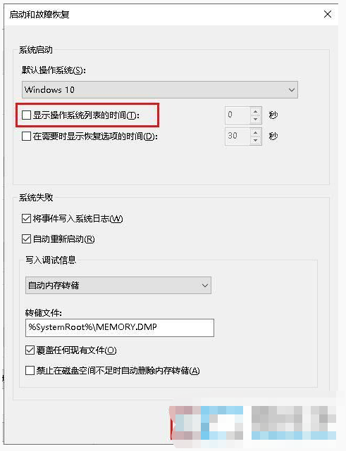 4、取消顯示操作系統列表的時間前面的對勾,點擊確定,重啟電腦即可解決。