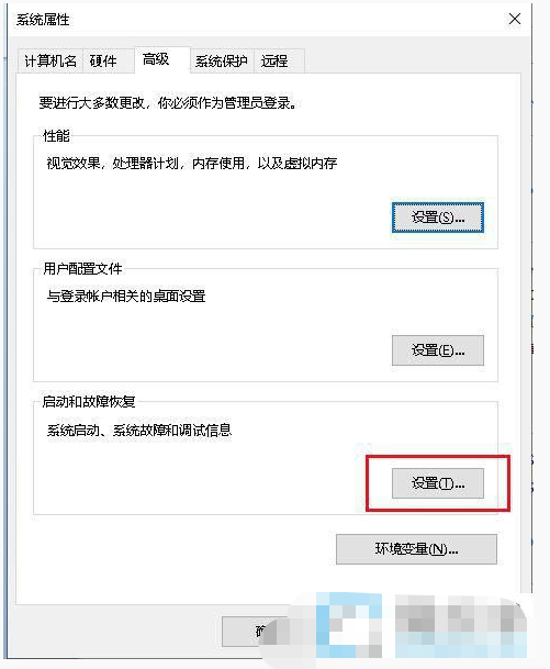 1、進入屬性的高級系統設置,點擊啟動和故障恢復下的設置。