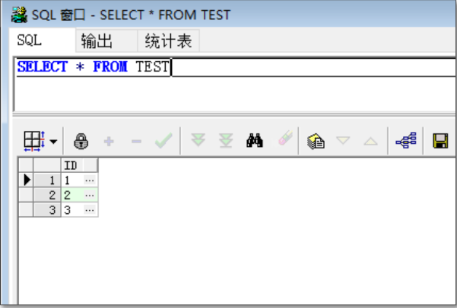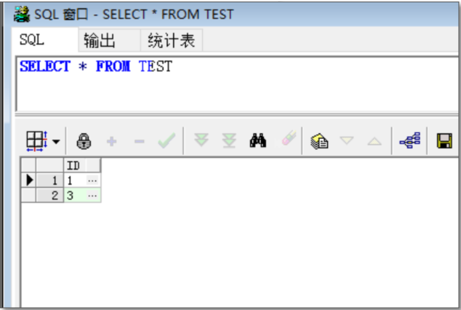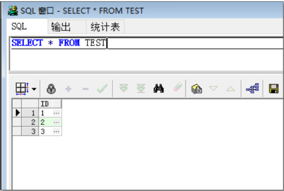1、首先新建一張測試表TEST,里面輸入記錄。由于刪除/更新/插入恢復步驟相同,這里僅演示刪除數據的情況。