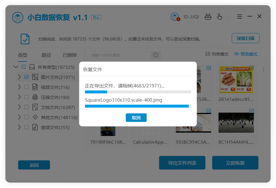 5、打開列表,勾選出要恢復的文件,點擊立即恢復。