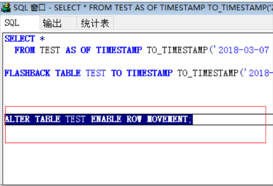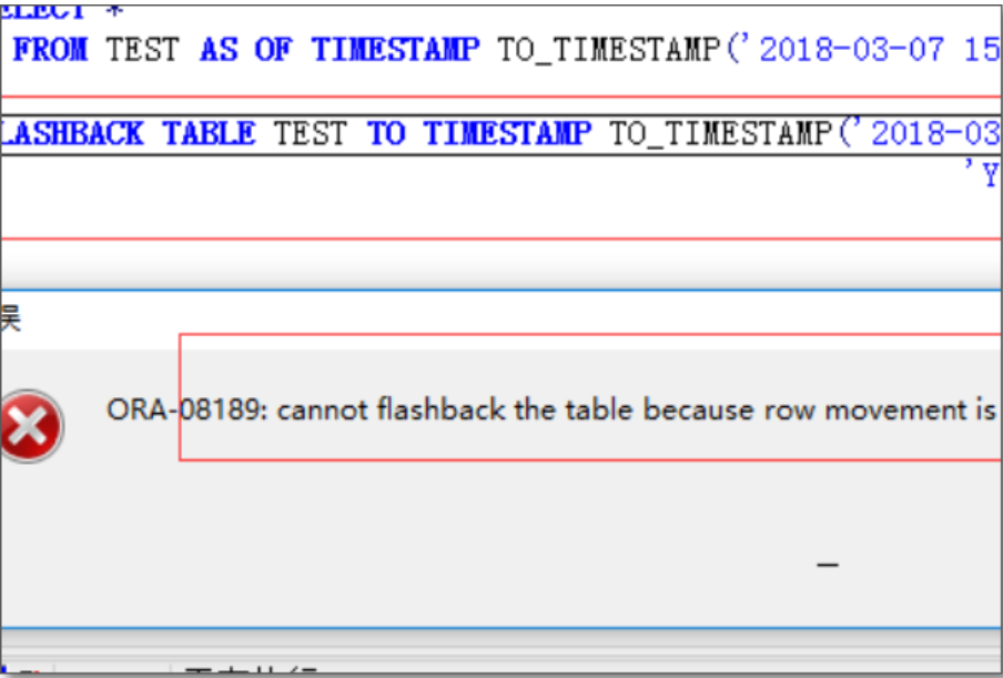 FLASHBACK TABLE TEST TO TIMESTAMP TO_TIMESTAMP('2018-03-07 15:33:00', 'YYYY-MM-DD HH24:MI:SS');