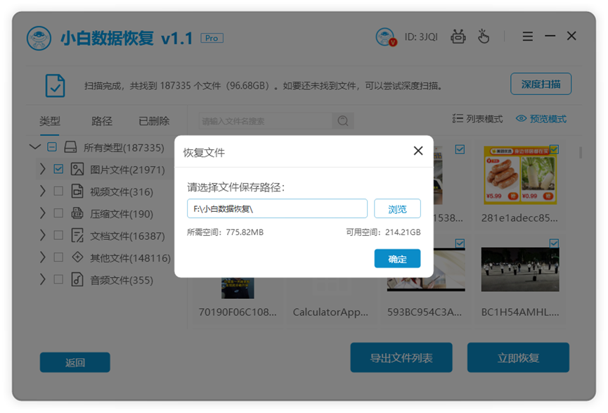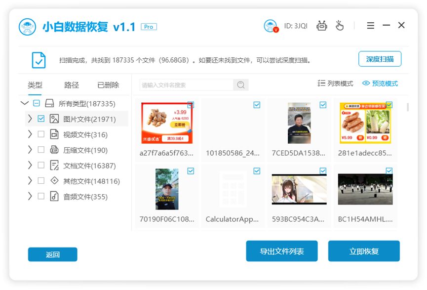 5、打開列表,勾選出要恢復的文件,點擊立即恢復。