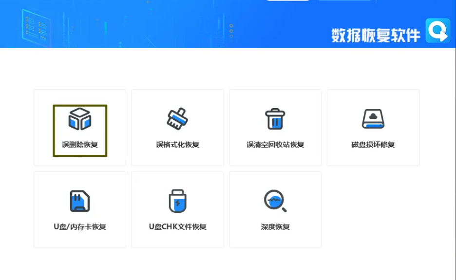 3、打開電腦中所安裝的“轉轉大師數據恢復軟件”,點擊“誤刪除恢復”菜單。