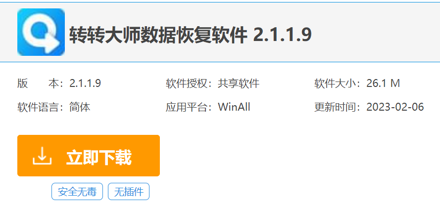 軟件版本:小白數據恢復專家v1.1 & 轉轉大師數據恢復軟件v2.1.1.9