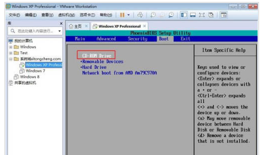 步驟六:重啟虛擬機按f2進入bios,然后關閉虛擬機,我們在左側選擇xp虛擬機-電源-進入固件。