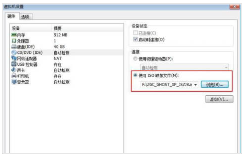 步驟一:當我們需要在虛擬機安裝xp時,首先我們創建一個系統版本為xp的虛擬機,然后在左側窗口點擊xp,選擇“cd/dvd”選項。