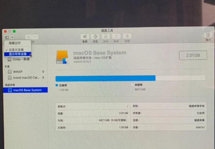 4 、如果想要硬盤格式化,即可在第二步選擇磁盤工具:進入磁盤工具后,首先選擇左側顯示的所有設備,點擊自己想要格式化的硬盤(擦除所有數據,制作需要的文件分區格式)。選擇硬盤后,選擇擦掉,此時需要選擇GUID分區圖,以便成為可啟動的引導分區,完成格式化操作等等。