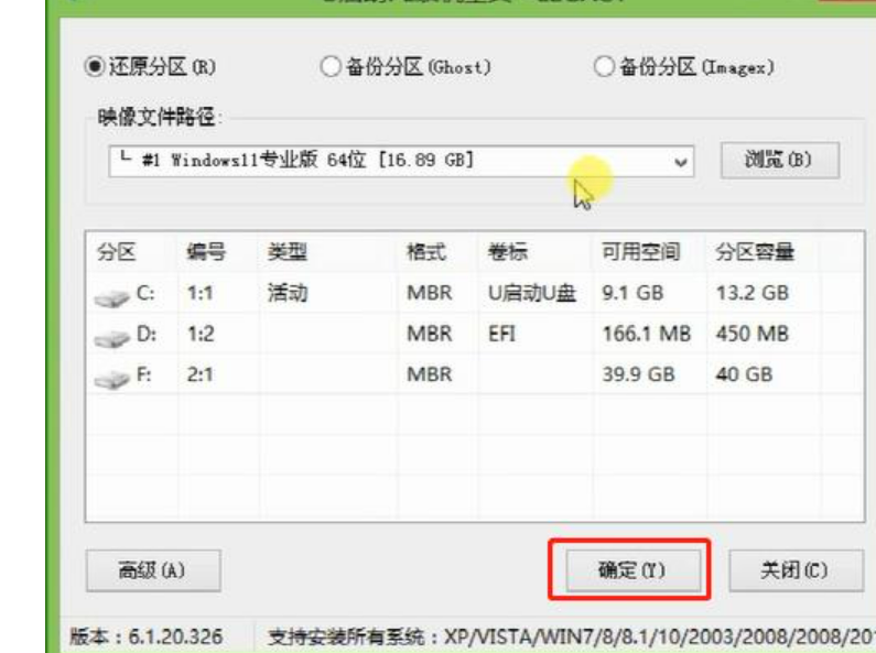 2、請點擊瀏覽,找到存放在U盤啟動盤中的系統鏡像文件,選中并打開,將系統鏡像安裝在c盤中并點擊確定按鈕;
