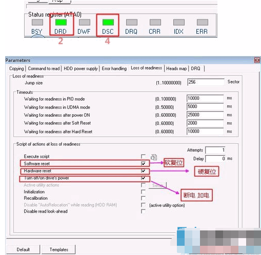 上圖是設置選項Loss of readiness的參數設置,意思就是硬盤不就緒不復位,其中可以勾選軟復位,硬復位和斷電以及加電,這些選項相對來說就有點復雜了,我們可以下載英文的使用說明書或者找找有沒有中文的來對照使用。