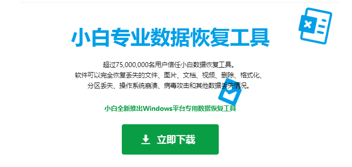 首先打開“小白數據恢復官網”,然后自行下載安裝小白數據恢復軟件。