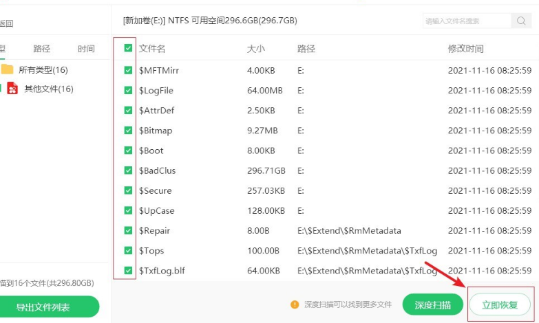 3. 系統進入文件掃描步驟,需要耐心等待一會。等到掃描結束,再把要恢復的文件勾選上,接著點擊“立即恢復”即可。