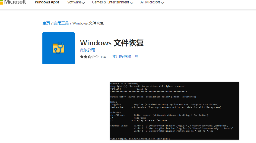 下載安裝Window File Recovery,打開Powershell或命令提示符(以管理員身份運行)。再輸入命令。