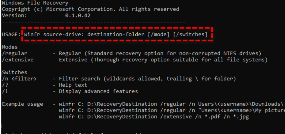 winfr source-drive: destination-drive: [/mode] [/switches]