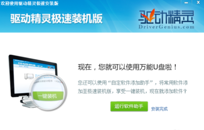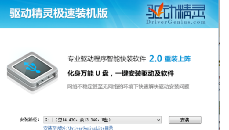 5、將剛才的U盤連接到重裝系統的計算機上,打開安裝驅動精靈的目錄,雙擊,啟動驅動精靈極速裝機版,進入到軟件主界面。