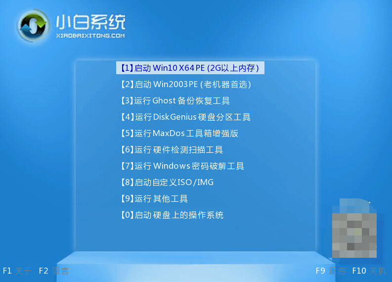 4、插入u盤啟動盤進需要安裝的電腦,開機不斷按啟動熱鍵進啟動界面,選擇u盤啟動項進入到pe選擇界面,選擇第一項pe系統回車進入。