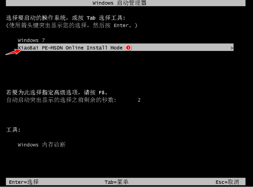 來到開機選項界面,如圖示,我們選擇第二項進入xiaobai-pe系統。
