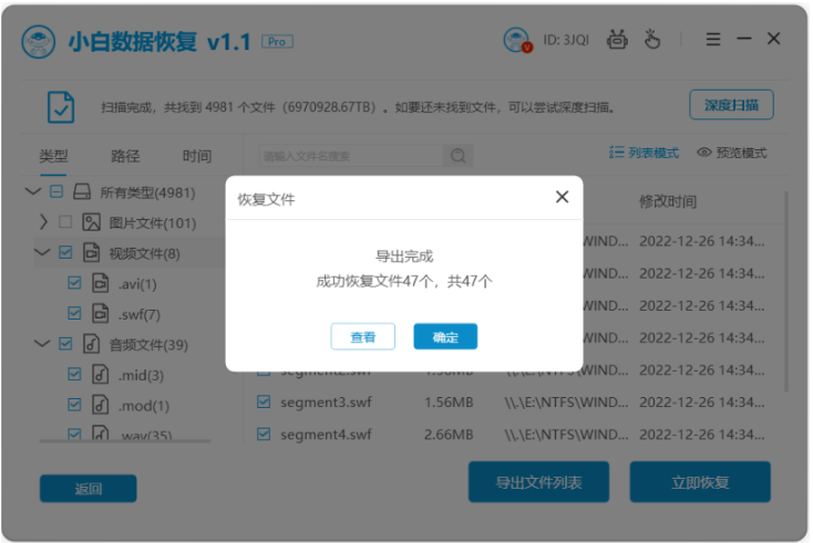 軟件版本:小白數據恢復軟件1.1