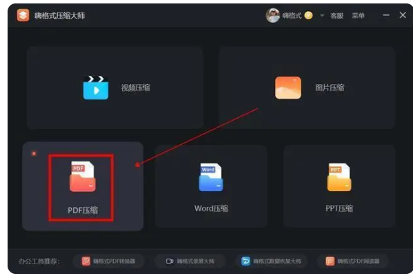 1、pdf文件編輯怎么操作呢?在電腦上打開后,點擊軟件首界面中的“PDF壓縮”功能。