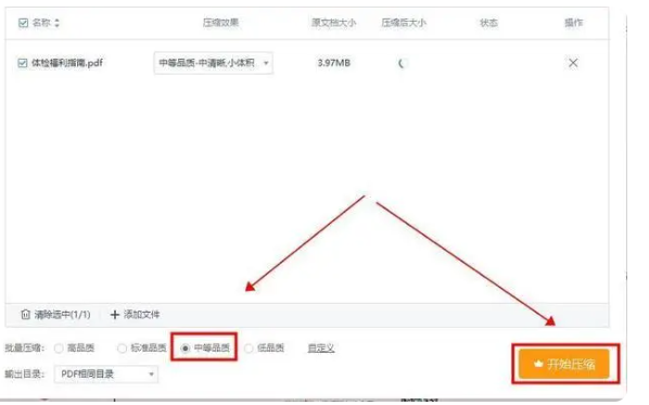 2、在跳出的壓縮窗口界面中選擇相關參數,如”中等品質“,并點擊”開始壓縮“就可以啦。