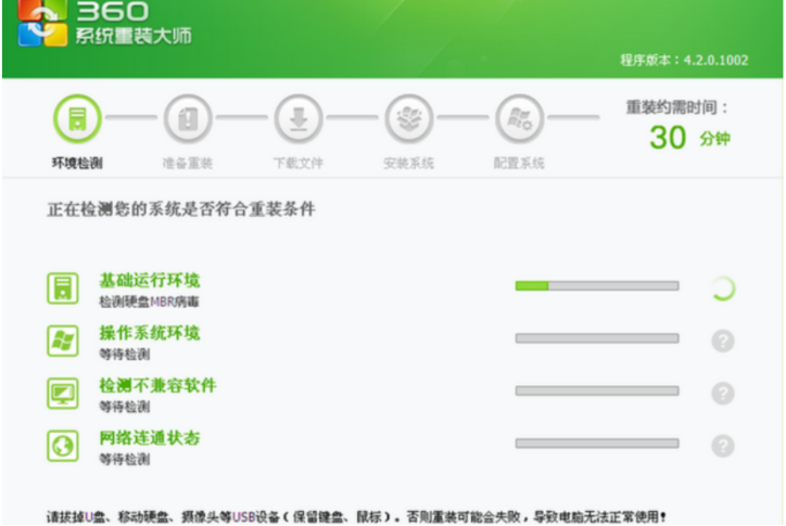 5、360系統重裝大師在新版本中增加了配置系統環節,將會對電腦驅動運行情況進行掃描,以確保安裝好的系統中驅動都能正常運行。