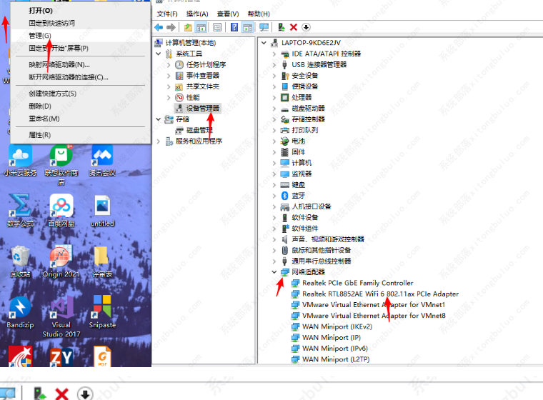 在設備管理器中卸載WiFi驅動,打開設備管理器=>網絡適配器=>WiFi6 adapter右鍵=>卸載設備=>關機重啟。