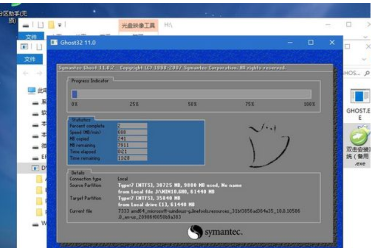 14、重啟過程拔出U盤,之后進入到這個界面,執行win10系統組件安裝、驅動安裝以及激活操作。