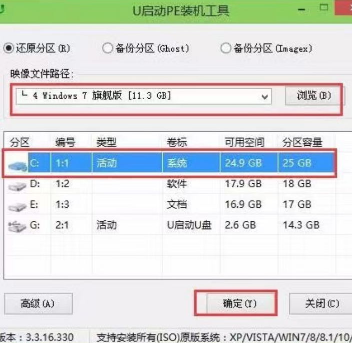 3、將準備好的win7系統鏡像儲存在c盤中,單擊確定。